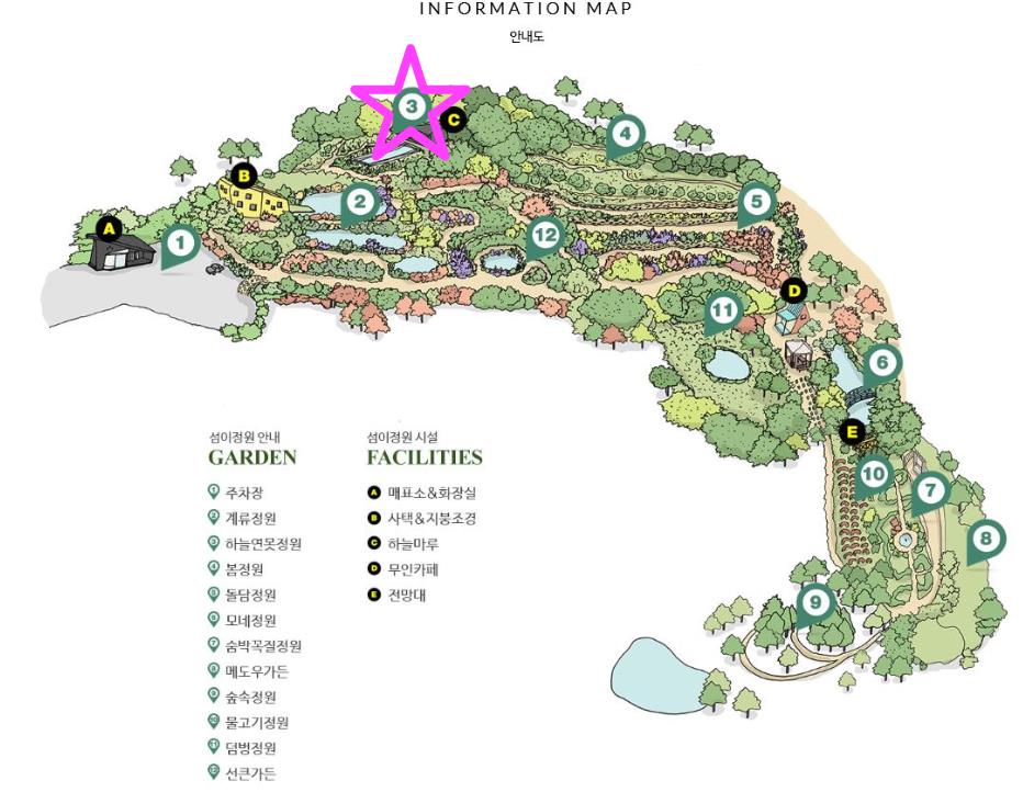(저는 시간이 없어서 No.9 숲속정원, No.4 봄정원은 못 가봤어요.)