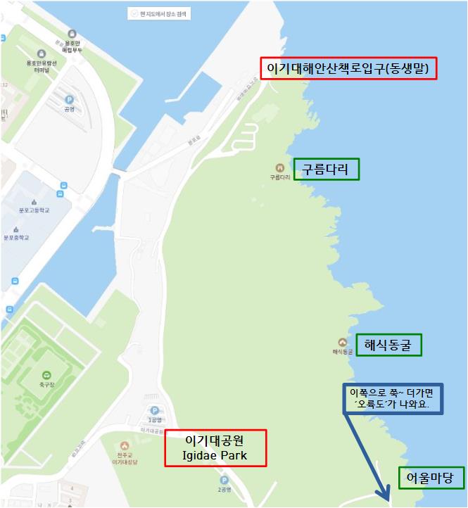 [Igidae Shore] 3.95 km / Approx. 2 hr ; Dongsaengmal - Eoulmadang - Nongbawi Rock - Oryukdo Sunrise Park